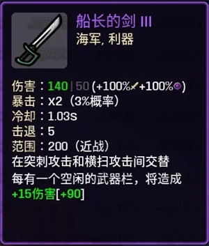 船长的剑:船长通关任意难度解锁,紫色武器