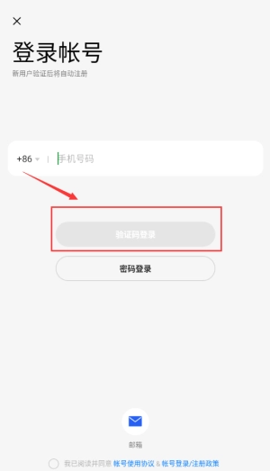4、点击红框内的验证码登录选项,通过获取短信验证码的方式进行登录。
