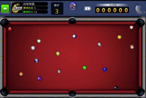 3、另外,球台上有六个球袋,玩家应在球群中观察,选择最适合的球路和角度。