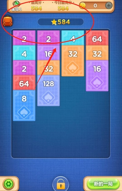 1. 点击“开始游戏”,两个数字“2”轻轻接触,瞬间变成“4”,数字越合并越大,分数不断攀升,带来满满的爽感。