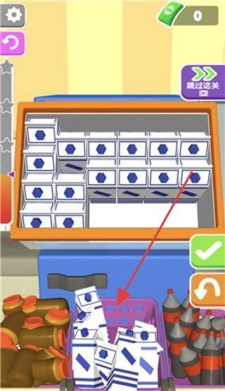 1、推开"抽屉整理"的虚拟柜门,面对大小不一的回形针、剪刀与胶带,按功能与尺寸拖入对应凹槽。