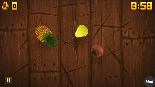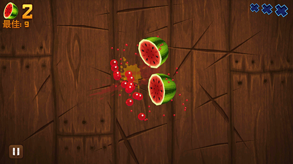 特效:在街机和禅境模式中会使水果额外反弹一次(说白了,就是没有切到的水果再重新抛一次。)