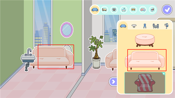 4、为用户提供了非常丰富的家具选项,比如沙发、桌子、洗手台、床、浴缸等,玩家可以根据个人喜好自由选择。