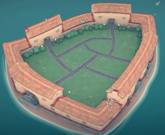 花园/田野内建造几座彼此靠近的建筑物,即可生成石墙,石墙样式取决于周围结构的形状和大小。