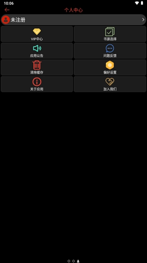 5、在个人中心,能够进行清除缓存以及更换书源的操作。