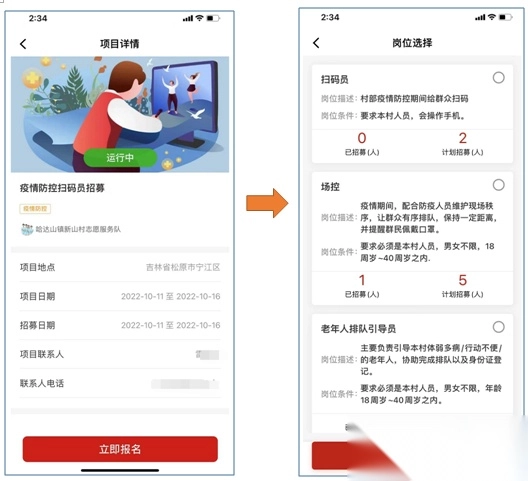 5、志愿活动丰富,操作步骤详细,让大家能轻松加入。1. 于首页点击【志愿项目】,寻得感兴趣的项目后,报名并挑选岗位。