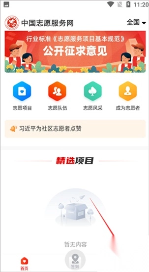此软件不只是一个服务平台,还是一个连接人与机会的桥梁。在这里,你可以和许多志同道合的伙伴们一起服务,参与丰富多彩的志愿活动,共同为社会贡献自己的力量。如果你怀揣着一颗愿意为他人、为社会献出爱心的心,那么这款中国志愿软件就是你不可或缺的伙伴。2、查询近期志愿项目,随时报名投身志愿服务。