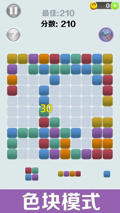 2、根据图中方块排列消除,隐藏关卡会突然变出会动的方块,手速要快才能拿高分。