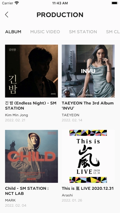 您可以查看所有 SM 艺术家的专辑、音乐视频、图像和活动信息,包括 Kang Ta、BoA、东方神起、Super Junior、少女时代、SHINee、f(x)、Red Velvet、NCT、EXO、aespa。您可以随时随地方便地查看SM Entertainment的所有相关信息。