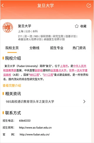 3、我们随意点击一个院校,里面有非常院校简介、分数线、招生专业、招生电话等等详细信息