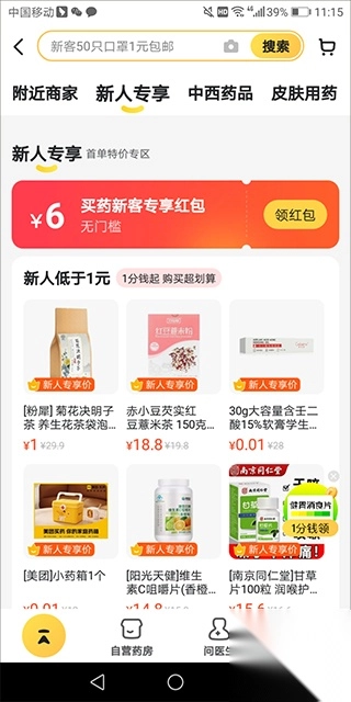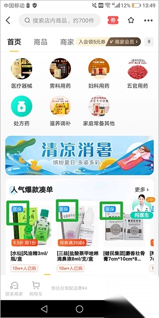 3、进入药店商家,领取商家在平台上提供的优惠福利