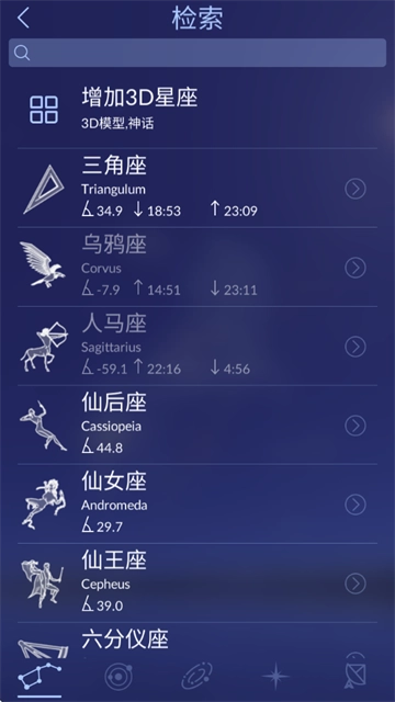深入了解星座在夜空中的尺度和位置。享受观察美妙的星座3D模型,将它们颠倒过来,阅读他们的故事。