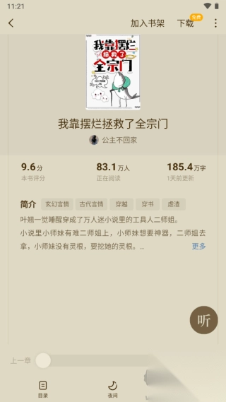 6、听书功能:不想看文字?只需轻点“听书”按钮,即可切换为语音播放模式,让双眼得到解放。