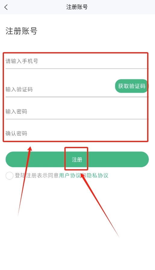 3、新用户注册时,需输入手机号以获取验证码。在填写验证码之后,设置密码,即可完成账号注册流程。
