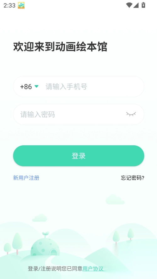 1. 下载动画绘本馆app,若为首次使用,先注册账号,之后登录该账号。