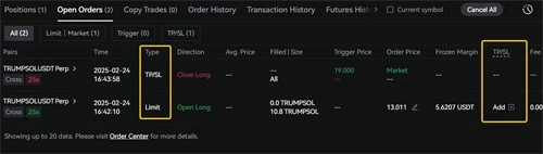 Web 端合约交易页新增「全部委託」展示,包括止盈止损订单,方便用户管理持仓。