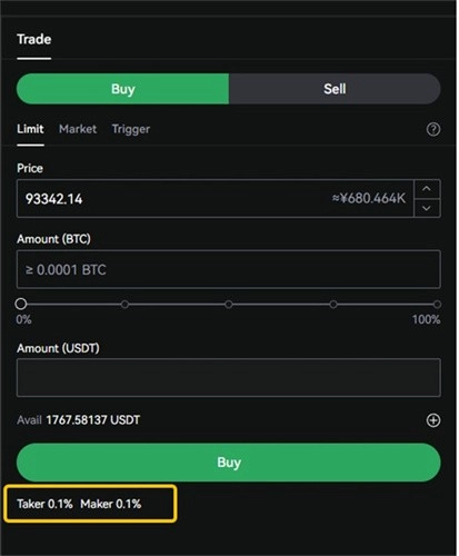 6、现货交易页新增Taker/Maker手续费率显示
