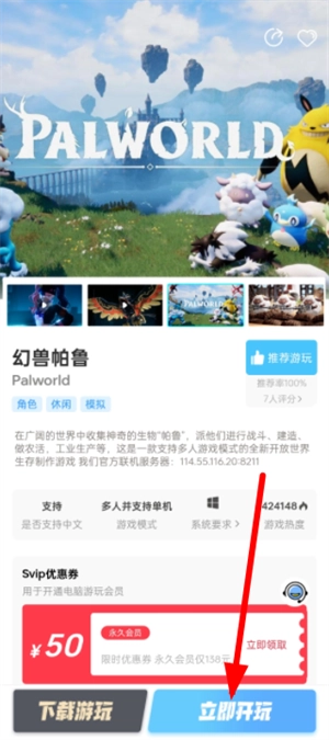 3、点击进入游戏页面,点击下方的立即开完选项
