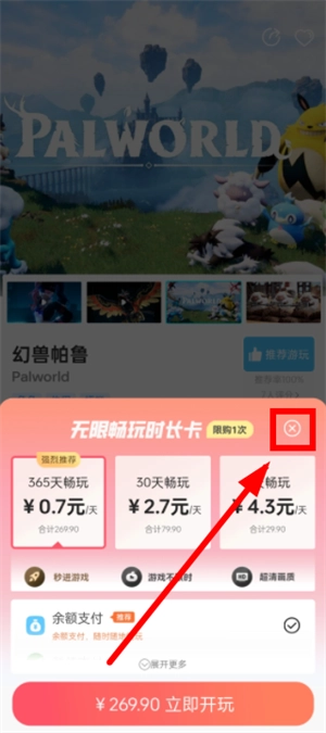 4、将弹出的充值窗口的给叉掉