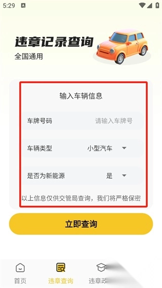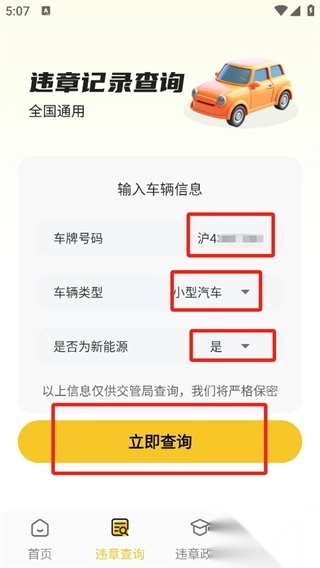 2、在这里可以输入想要查询的车辆号码、类型以及是否新能源等信息。