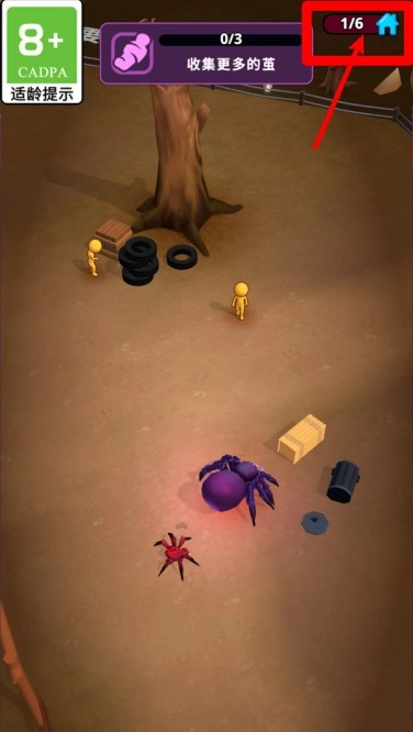 2.界面右上角的蓝色小屋图标代表当前巢穴数量与上限,随着游戏进度推进可扩展更多蜘蛛巢来培育新兵种。