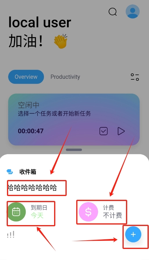 3、在页面输入任务名称,选择到期日和是否计费,点击右下角加号完成创建。