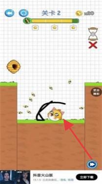 2、进入游戏关卡,设计线条路径,引导猫咪避开蜜蜂,成功到达终点,赢得奖励。