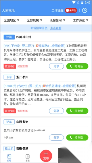 大象找活app,是专为工程机械从业人员打造的超靠谱找活服务平台。该软件支持挖机、叉车、铲车、吊车等各类驾驶员在线找工作任务。我们一心只为机主提供精准且高质量的工作。在这款软件上,你不仅能获取最新订单信息,还能按需调整,更可在线发布订单与他人交流,如此一来,大家在闲暇时间也能有一定收入。为保障大家的权益,平台上的工作都经过严格审查,大家可放心求职。