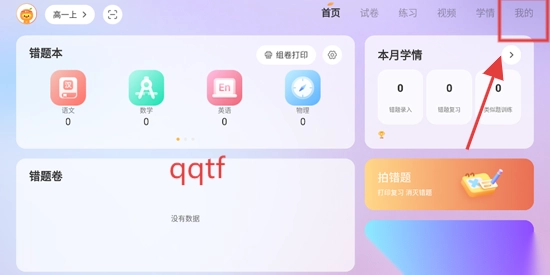 请打开您的橙果错题本HD,然后点击“我的”选项。