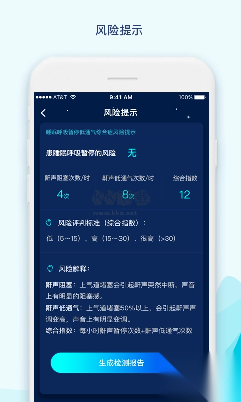 1、检测结果包括鼾声个数、鼾声总时长、鼾声响度、AHI数值等重要生理指标