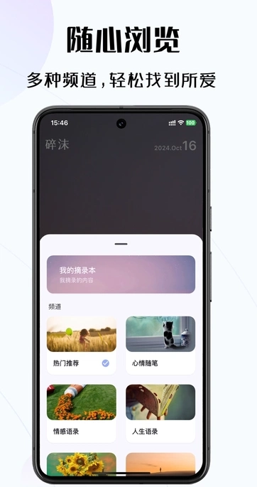 碎沫app内汇聚海量经典语句。用户能够依据排行榜,在此挑选所需语句,不仅能一键在线收藏,还可及时与他人分享。每日欣赏一篇别具一格的语句十分必要,这也会让你领略到语言的魅力。