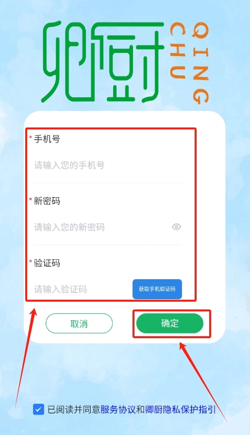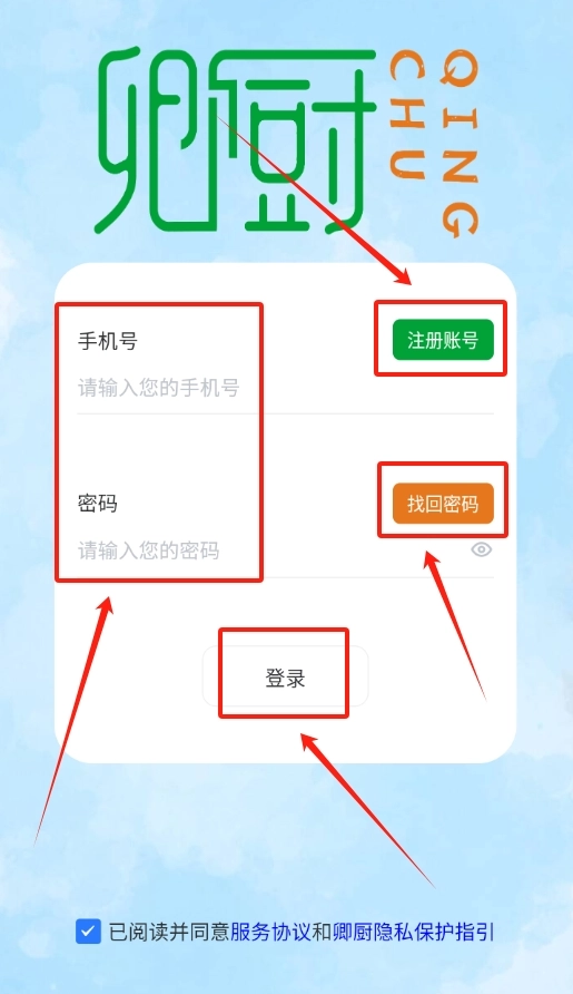 1. 下载安装app步骤:打开手机应用市场,在其中搜索“卿厨”,完成下载与安装后,点击进入主界面。