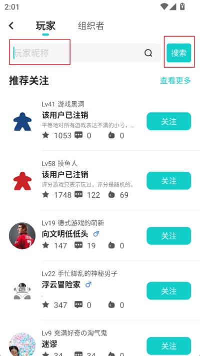 4、点击后会进入玩家搜索功能界面,在此处输入玩家昵称,接着点击后方的【搜索】选项就行。