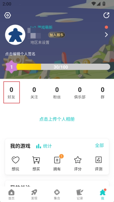 2、点击之后,会进入个人信息界面。在此界面,能够查看自身的信息内容,接着点击上方的【好友】功能。