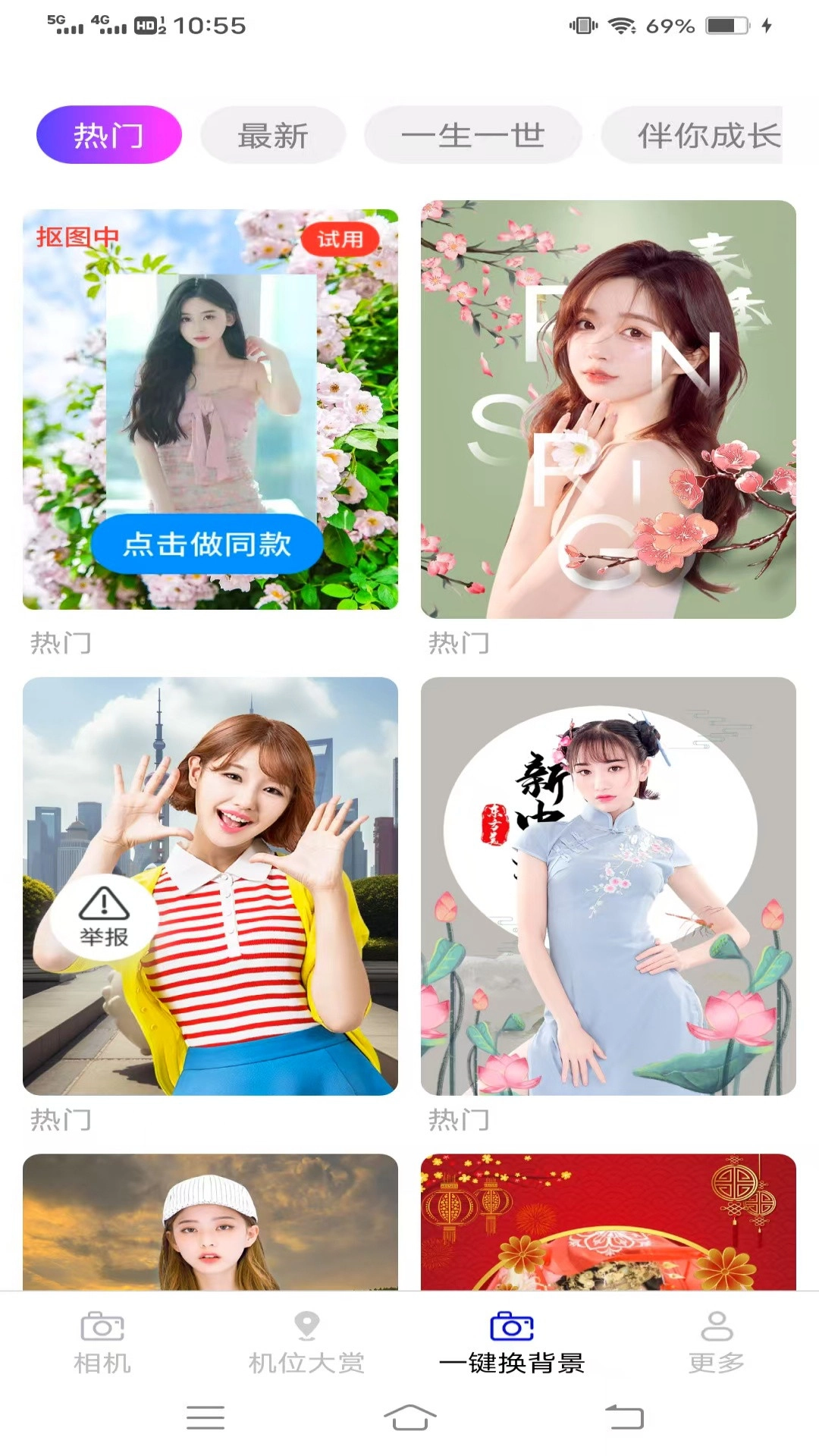 3、一键换背景页面提供了丰富多样的背景选择,能实现及时且高效的背景更换。
