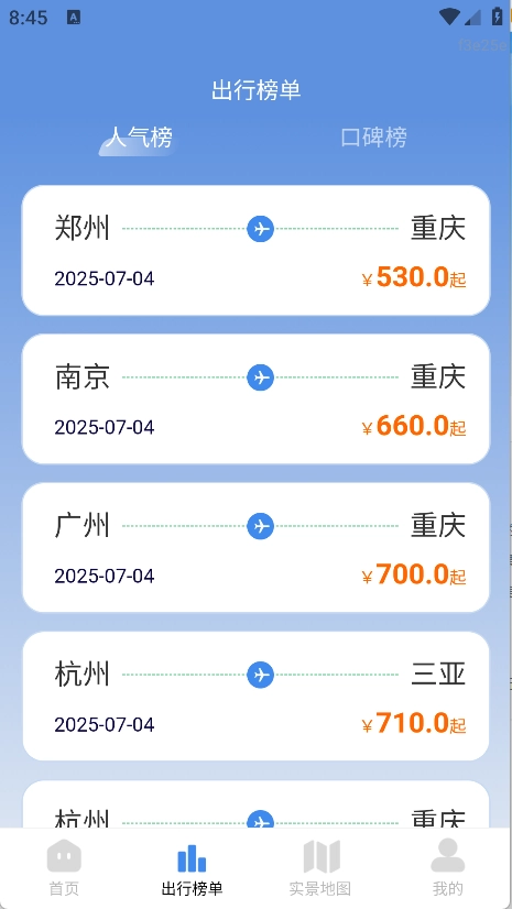 4、呈现热门航线榜单,为行程规划给予参考,让热门路线清晰可见。