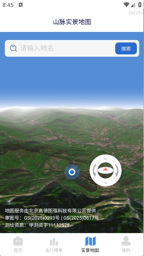 3、于实景地图里输入地名,便能搜索到山脉实景地图的信息内容。
