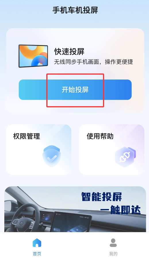 1、启动APP后,点击首页“一键投屏”按钮,系统自动检测可用设备。