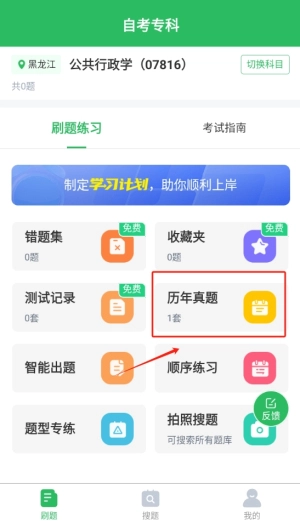 1、真题练习模块,用户可以选择历年真题进行模拟练习,帮助其熟悉考试题型和出题思路,减轻考试焦虑感。