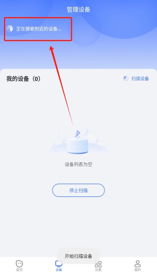 2、点击后软件会自动扫描附近的智能设备,等待一会儿就能看到扫描结果。