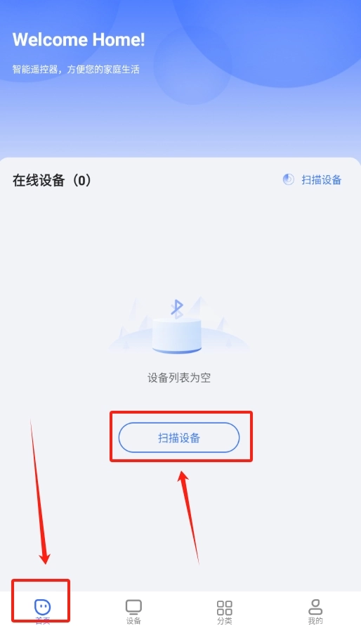1、打开语点智能软件,在首页一眼就能看到 “扫描设备” 按钮,点击它就可以开始扫描。