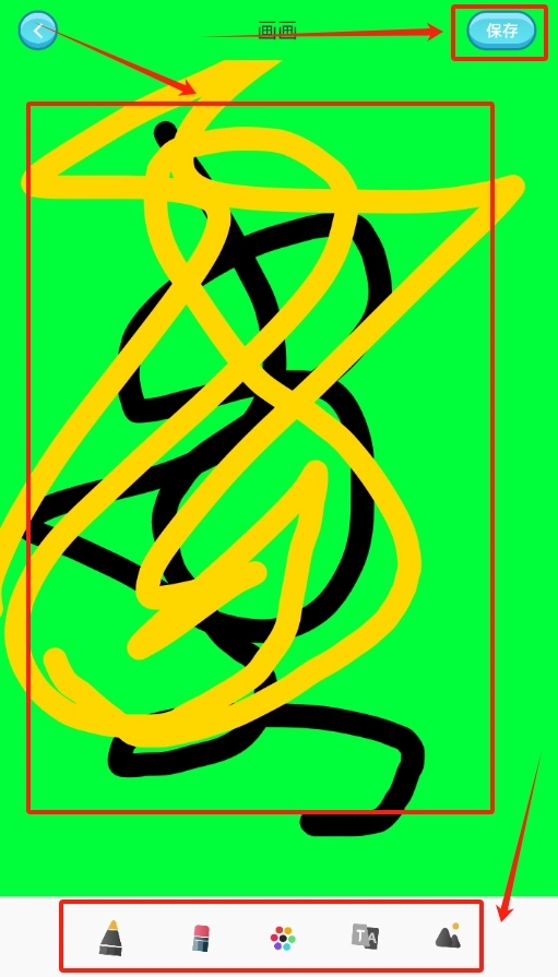 2、在弹出的画板上尽情画画,画完检查没问题,点击右上角的保存按钮留住作品。