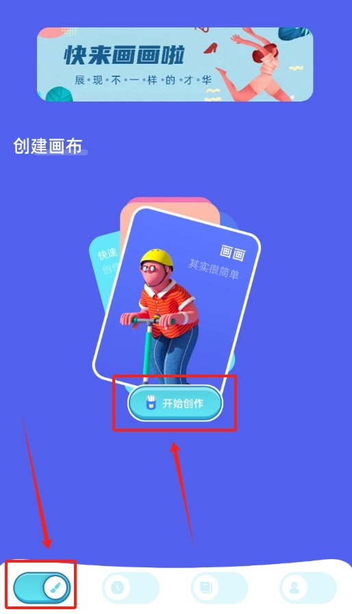 1、打开memopad画图工具,一进首页就能看到 “开始创作” 按钮,直接点它就可以开工。
