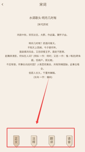 4、在诗词学习区,用户不仅能够阅读诗词原文,还可聆听与之匹配的朗诵音频,了解其创作背景,从多个维度领略古典文学的独特魅力。