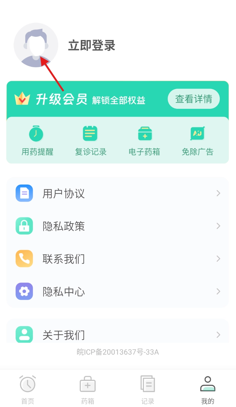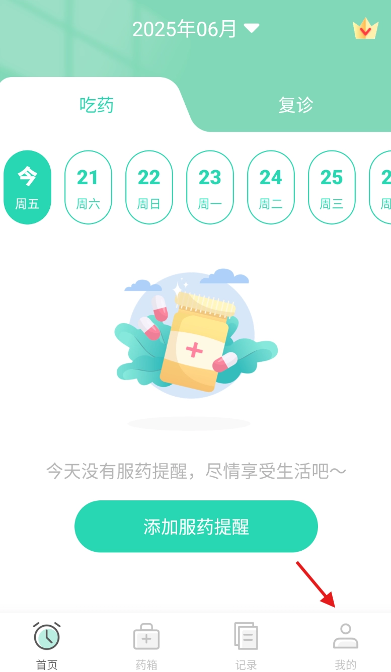 1、首先打开药准时管家软件,点击底部导航栏中 “我的” 选项进入个人中心。