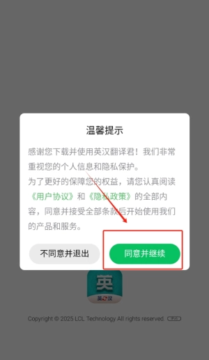 1、点击同意按钮以进入应用程序界面,确保您已接受相关使用条款和隐私政策。