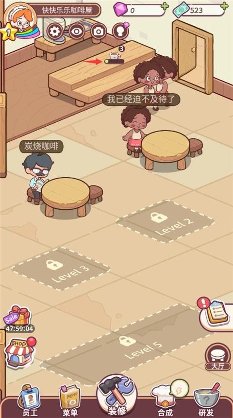6、随着游戏进程,玩家可以解锁更高级的设备、食材和装饰,提升咖啡店的质量和吸引力。