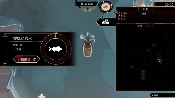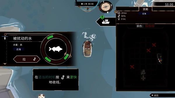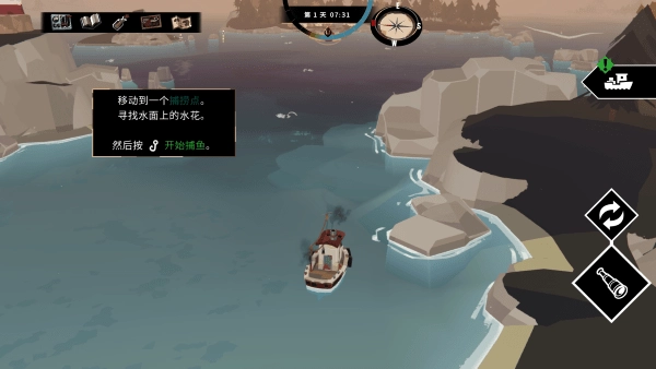 9、你的时间只有在你移动、捕鱼的时候才会流逝,在天黑之前回到港口就行了。