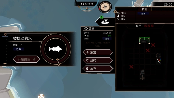 5、移动你的船到达一个捕鱼店,出现鱼钩的图标就能掉了。