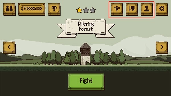 2、点击中间的“Fight”,就能开启游戏。页面上方从左至右依次是训练场、武器、人物。